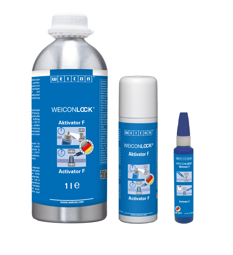 Přípravou povrchu pomocí WEICON Aktivátor F lze dobu vytvrzení výrazně zkrátit. Aktivátor se doporučuje také pro všechny pasivní povrchy, ovšem v každém případě při nižších teplotách prostředí (pod +10 °C/+50 °F) a větších šířkách spáry. Na nekovovém povrchu lze dosáhnout vytvrzení jen s pomocí aktivátoru WEICONLOCK.