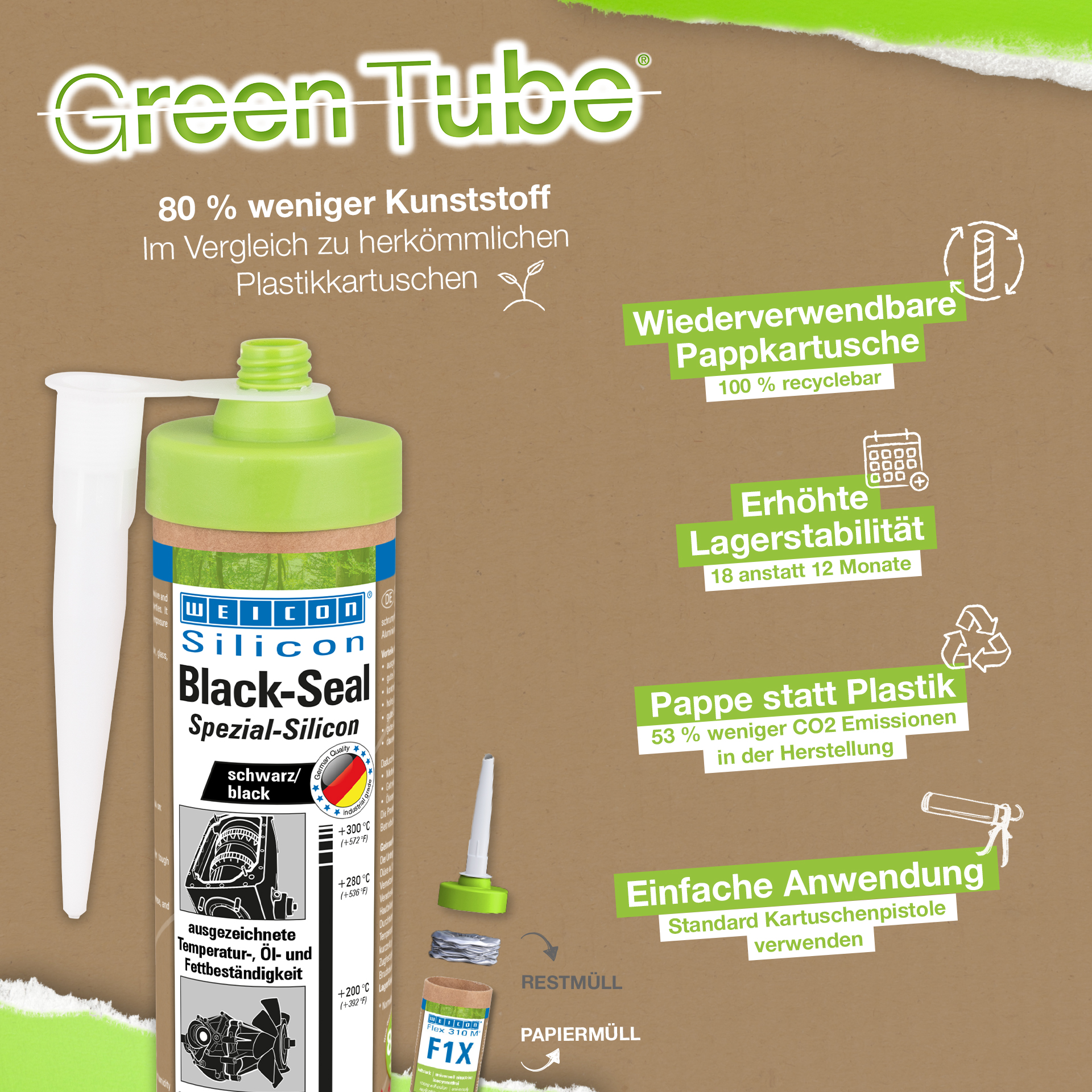 WEICON Black-Seal je odolný proti vysokým teplotám (+280 °C/+536 °F), bez rozpouštědla, s vysokou přilnavostí, odolávající tlaku, klimatu a stárnutí, extrémně elastický (roztažnost cca 500%). Black-Seal je určeno pro lepení a utěsnění tam, kde je vyžadovaná zvláště vysoká odolnost proti olejům a tukům. WEICON Black-Seal lze používat v převodovkách, ventilech a krytech, olejových vanách a čerpadlech, ve vodních čerpadlech, převodovkách, nápravách, přírubách, nádržích a v mnoha dalších oblastech.