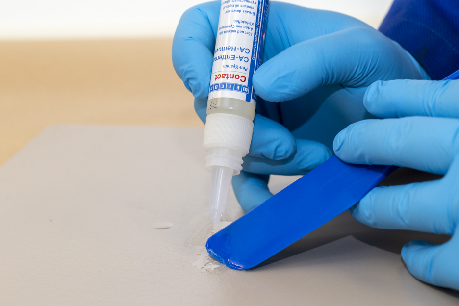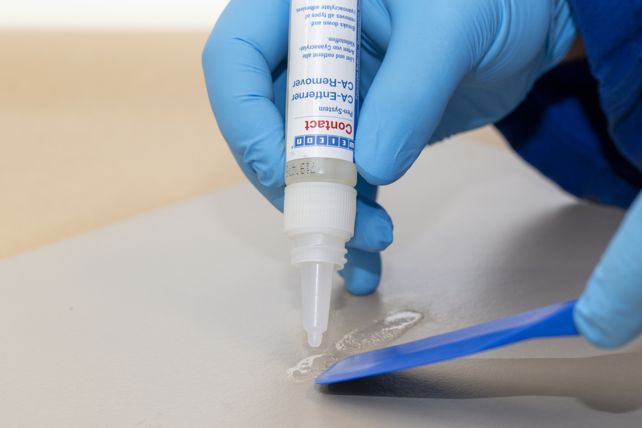 WEICON CA-odstraňovač spolehlivě narušuje a odstraňuje všechny typy kyanoakrylátových lepidel. Odstraňovač je vhodný k čištění kovových dílů, nástrojů a mnoha různých povrchů, které přišly do styku s kyanoakrylátovými lepidly. Po několika minutách nasáknutí lze rozpuštěné lepidlo setřít hadříkem, který nepouští vlákna. V případě odolného znečištění postup opakujte. CA-odstraňovač může poškodit některé plasty, nátěry a citlivé povrchy. Proto by měla být vždy testována materiálová kompatibilita povrchu na skrytém místě. Na rozdíl od jiných konvenčních rozpouštědel není WEICON CA-odstraňovač vysoce hořlavý a má vysoký bod vzplanutí> 120 °C.