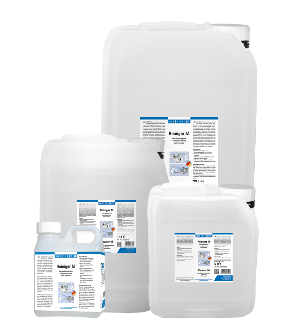 WEICON Čistič M čistí a odmašťuje všechny kovy, plasty, pryž, sklo, keramiku, dřevo nebo lakované a povrstvené povrchy. Je výkonný a přesný při čištění mastnoty, oleje, pryskyřice, sazí, vosku, separačních činidel, formovacích látek, chladicích maziv a také zbytků etiket a lepidel. Čistič M je připraven k použití, rychleschnoucí, nehořlavý a klasifikovaný jako zdravotně nezávadný. Použití čističe je snadné a bezpečné. Lze jej použít například k čištění a odmašťování strojních součástí a nástrojů. Speciální složení ze speciálních povrchově aktivních látek a alkoholů neobsahuje žádné silikonové odpěňovače, je nemastný a významně tak přispívá k procesně bezpečnému čištění součástí ve výrobních procesech.