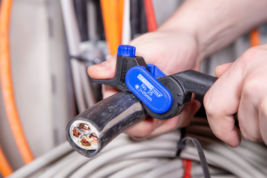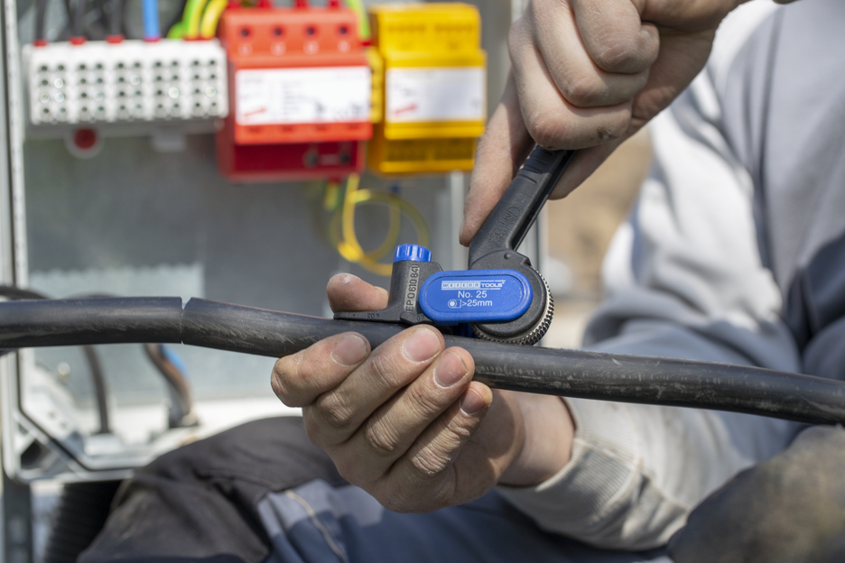 kabelový nůž pro podélné a kruhové řezy na kulatých kabelech od Ø 25 mm