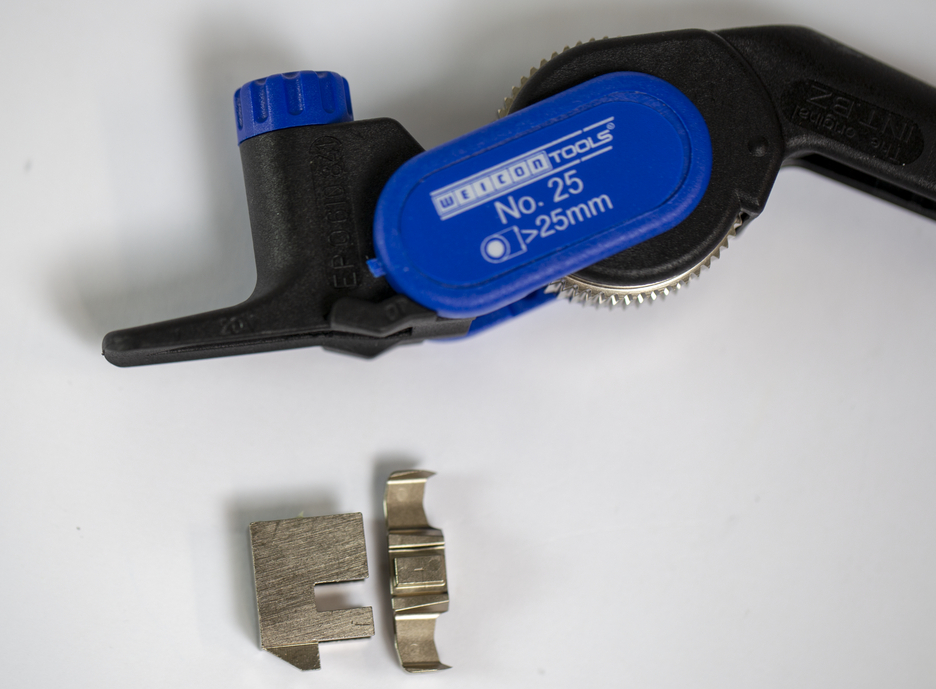 Bezpečná práce se skrytým ostřím Zakřivená špička nože pro ochranu vodičů Snadná práce i při nízkých teplotách Přesný, spolehlivý, s vyměnitelným nožem
