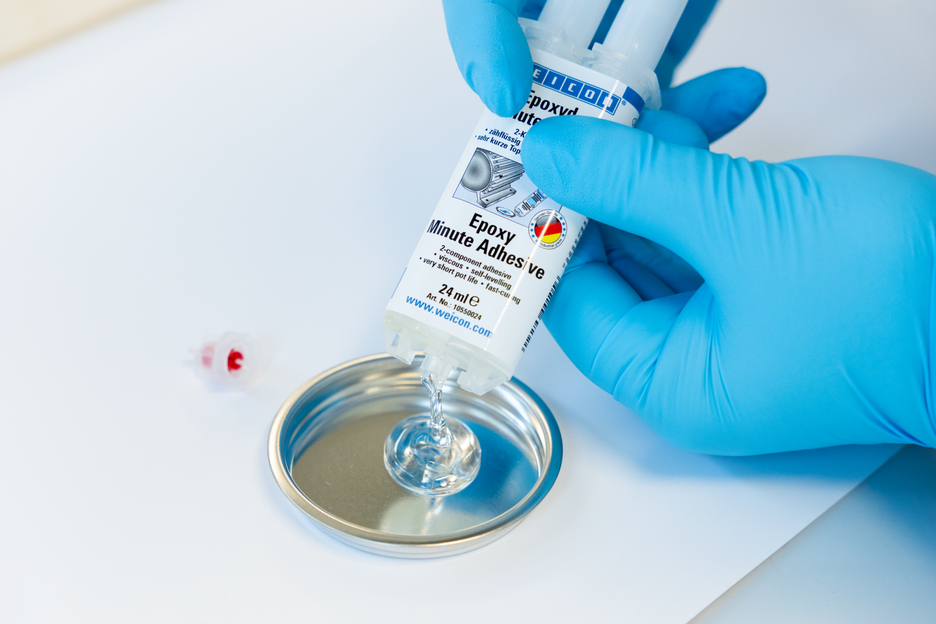 WEICON Epoxidové minutové lepidlo je univerzálně použitelný dvousložkový systém epoxidové pryskyřice. Lepidlo je odolné vůči vysokým teplotám až do +180 °C, viskózní a samonivelační. Má velmi krátkou dobu zpracovatelnosti a rychle vytvrzuje. Epoxidové minutové lepidlo spojuje mnoho různých materiálů, například kov, plast, vláknitý kompozit, keramiku, sklo, kámen nebo dřevo. Průhledné lepidlo je vhodné pro řemeslné aplikace nebo náročné kutilské projekty. Lze jej použít také při veletržním a prodejní montáži, a při stavebních a konstrukčních pracích.