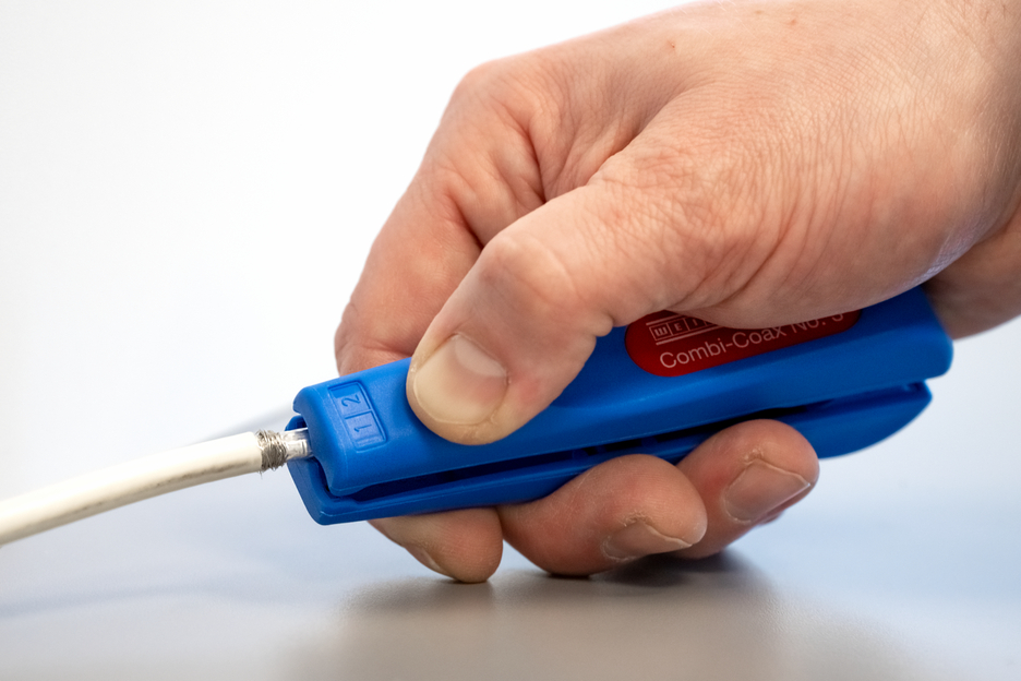 Pracovní rozsah 4,8 - 7,5 mm Ø Vhodné také pro flexibilní kabely Integrovaný a dobře přístupný boční břit ke střihání vodičů až do Ø 8 mm Umožňuje dvou nebo třístupňové odizolování všech běžných koaxiálních kabelů