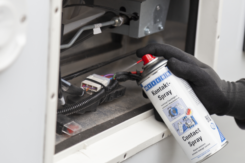 WEICON Kontaktní sprej je založený na speciální kombinaci účinných látek pro ošetřování a ochranu elektrických komponent a kontaktů. Z elektrických kontaktů vytěsňuje vlhkost, zabraňuje vzniku bludných proudů, poklesu napětí a udržuje kontatky, pojistky a přípojky čisté a bez vrstev oxidů a sulfidů. WEICON Kontaktní sprej tedy nachází uplatnění např. v pojistkových skříních, komunikačních systémech, pohonech vrat, zásuvkách, kabelových koncovkách a zástrčkách, kabelových bubnech a prodlužovacích kabelech, v elektrickém zahradním nářadí a v osvětlovacích soustavách.