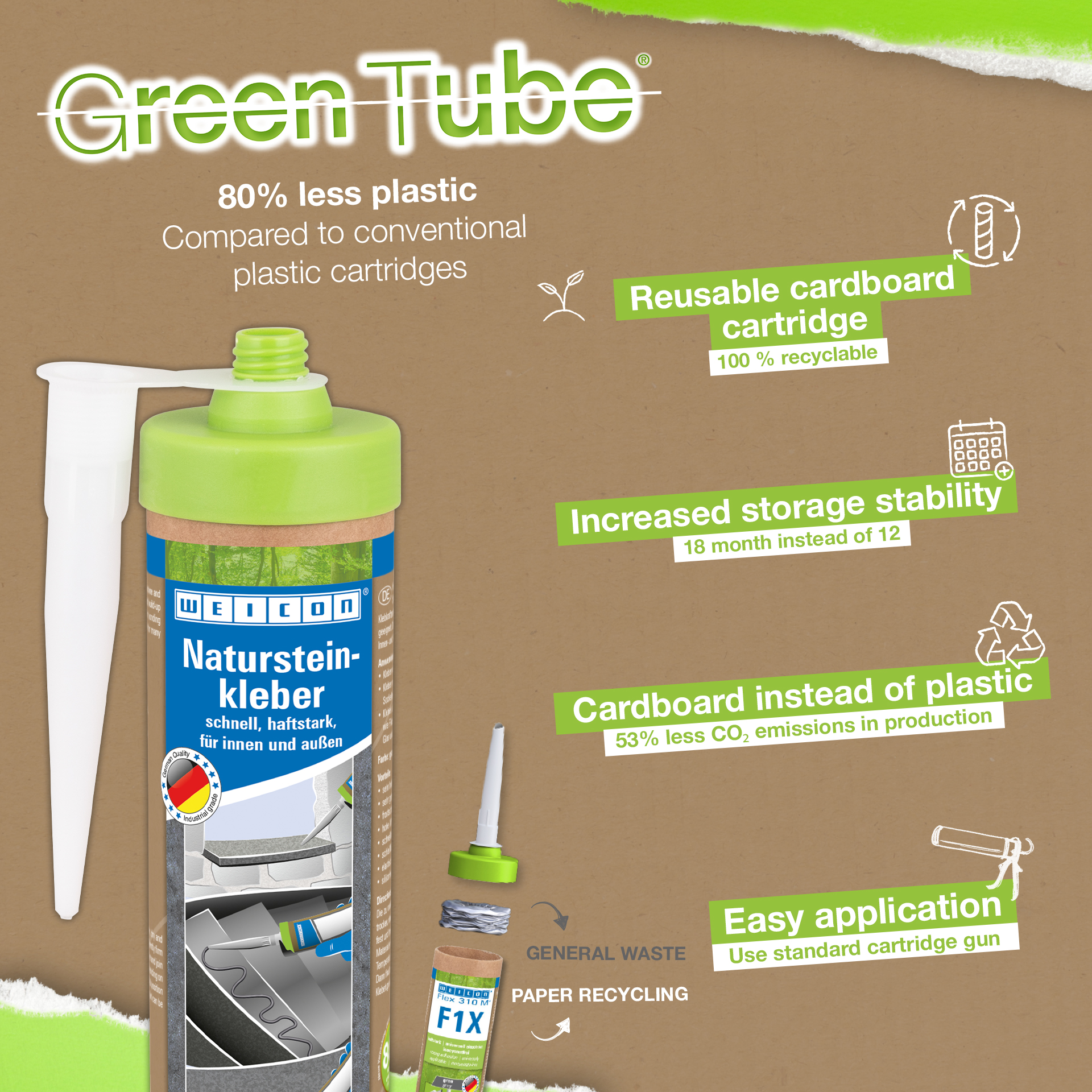 WEICON Lepidlo na přírodní kámen je silné lepidlo pro upevnění přírodního kamene, kameniny a keramiky. Díky velmi vysoké počáteční přilnavosti a rychlému nárůstu pevnosti lepidla je možné lepení i na svislé povrchy, jako jsou stěny. Lepidlo na kámen je vhodné pro mnoho vnitřních i venkovních aplikací. Je mrazuvzdorné, má vysokou teplotní odolnost od -40 °C do +90 °C a také vysokou odolnost proti povětrnostním vlivům a UV záření. Lepidlo na přírodní kámen rychle tvrdne a má velmi vysokou konečnou pevnost. Po vytvrzení lze lepidlo brousit a zůstává pružné, aby vyrovnávalo pohyby. Lepidlo na kámen neobsahuje silikon, izokyanát, halogen ani rozpouštědla. Lze jej použít v široké škále aplikací, např. k lepení okenních parapetů, obkladů, soklových lišt, ozdobných lišt nebo schodišťových stupňů. WEICON Lepidlo na přírodní kámen velmi dobře přilne k široké škále materiálů, jako je dřevo, materiály na bázi dřeva, plasty, kovy, sklo a minerální podklady. Je k dispozici v šedé a bílé barvě.