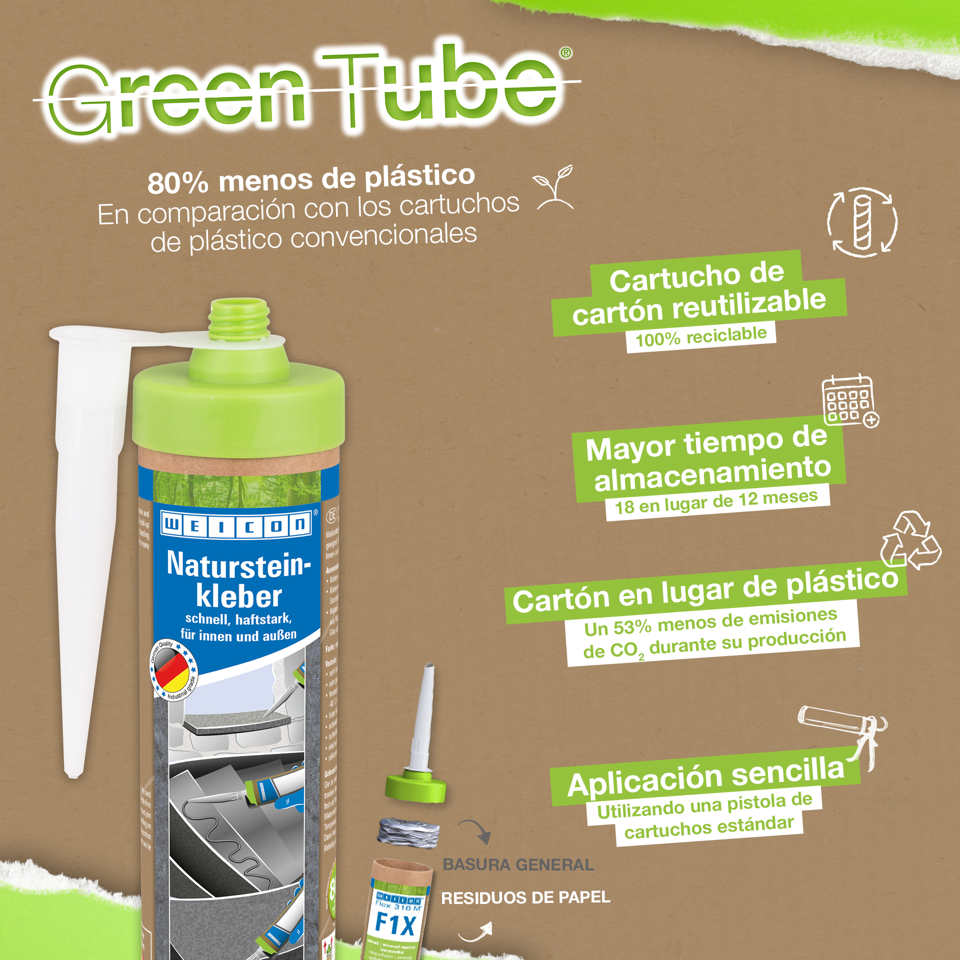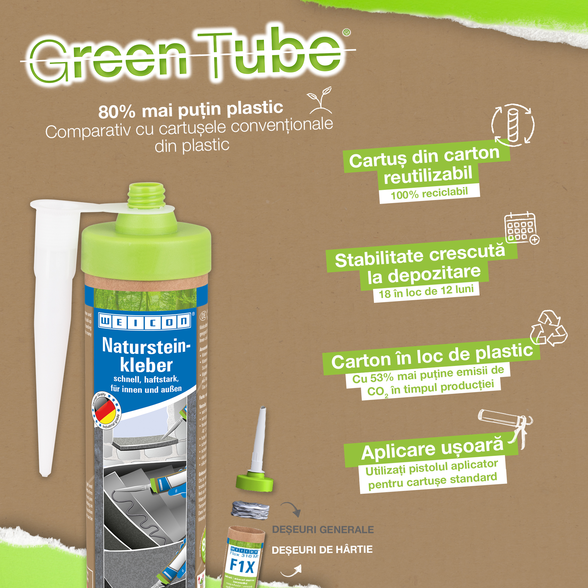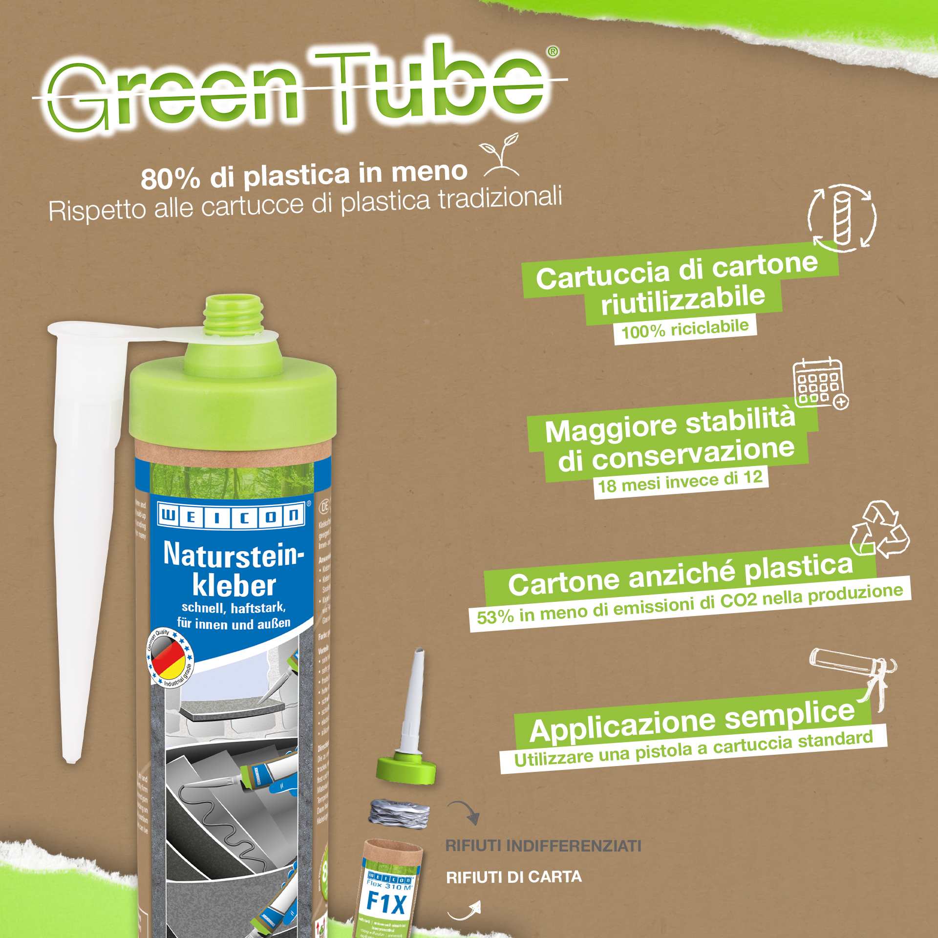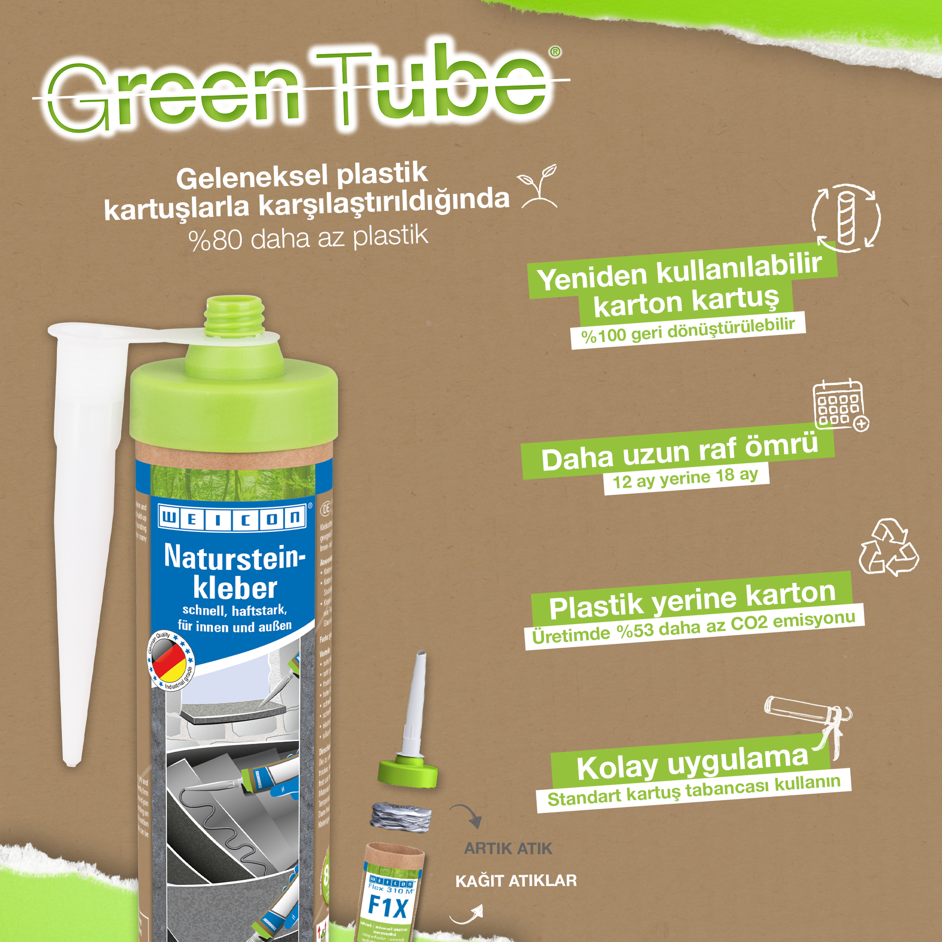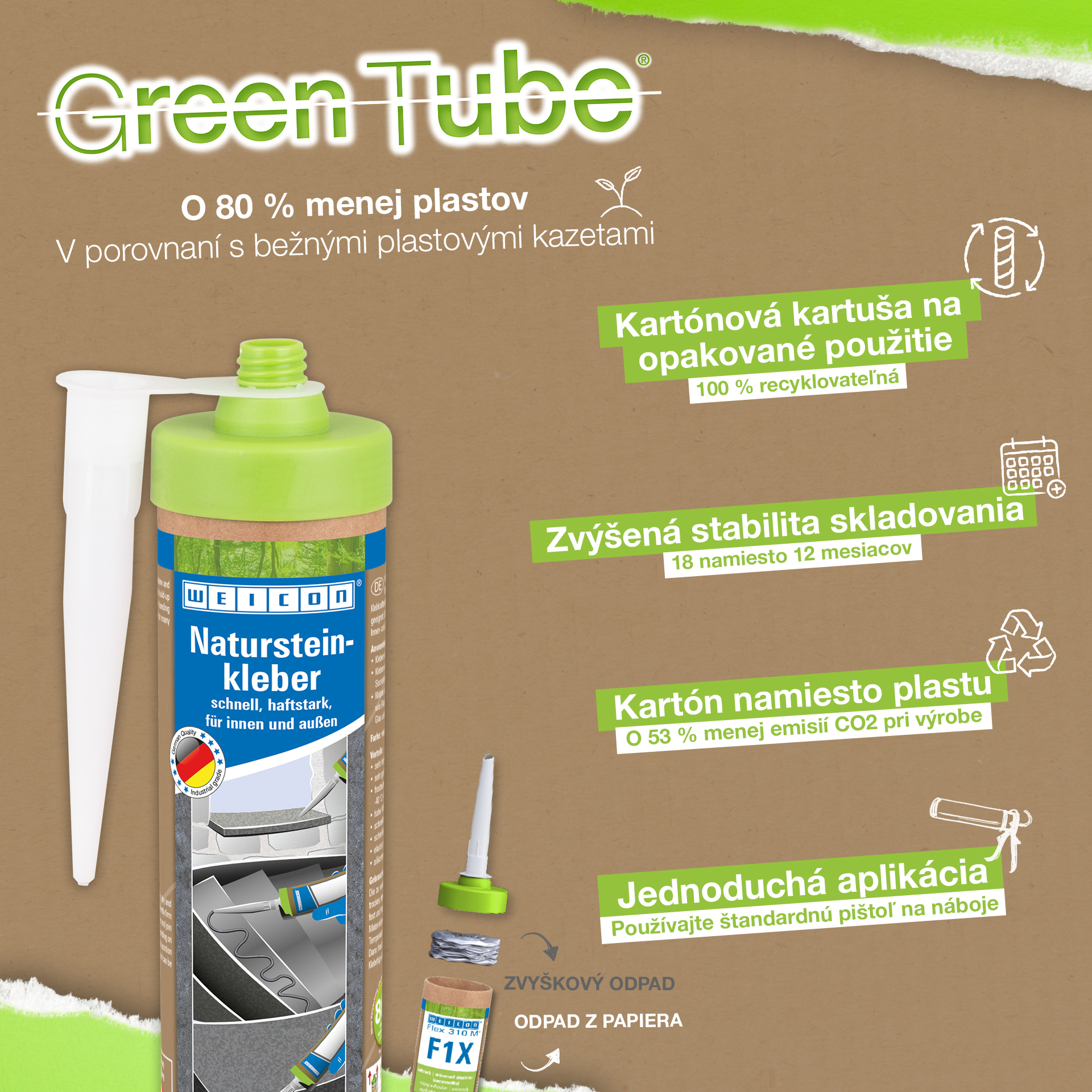 WEICON Lepidlo na přírodní kámen je silné lepidlo pro upevnění přírodního kamene, kameniny a keramiky. Díky velmi vysoké počáteční přilnavosti a rychlému nárůstu pevnosti lepidla je možné lepení i na svislé povrchy, jako jsou stěny. Lepidlo na kámen je vhodné pro mnoho vnitřních i venkovních aplikací. Je mrazuvzdorné, má vysokou teplotní odolnost od -40 °C do +90 °C a také vysokou odolnost proti povětrnostním vlivům a UV záření. Lepidlo na přírodní kámen rychle tvrdne a má velmi vysokou konečnou pevnost. Po vytvrzení lze lepidlo brousit a zůstává pružné, aby vyrovnávalo pohyby. Lepidlo na kámen neobsahuje silikon, izokyanát, halogen ani rozpouštědla. Lze jej použít v široké škále aplikací, např. k lepení okenních parapetů, obkladů, soklových lišt, ozdobných lišt nebo schodišťových stupňů. WEICON Lepidlo na přírodní kámen velmi dobře přilne k široké škále materiálů, jako je dřevo, materiály na bázi dřeva, plasty, kovy, sklo a minerální podklady. Je k dispozici v šedé a bílé barvě.
