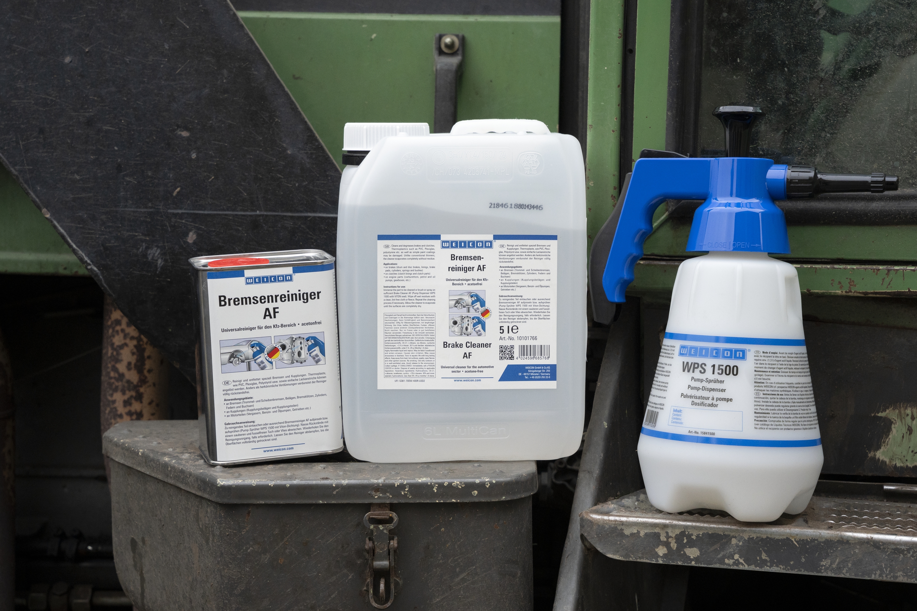 The cleaning agent was specially developed for cleaning and degreasing brakes and clutches. It can be used on drum and disc brakes, brake linings, brake pads, cylinders, springs and bushes. The cleaner is suitable for clutch linings and components, as well as for engine parts such as carburettors, fuel and oil pumps and gearboxes. Plastic profiles, seals or painted surfaces can also be cleaned with the product. Thermoplastics such as PVC, Plexiglas, polystyrene etc. and simple paint coatings may be affected by the cleaner. Weicon Brake Cleaner AF can be used in many areas of industry and trade.