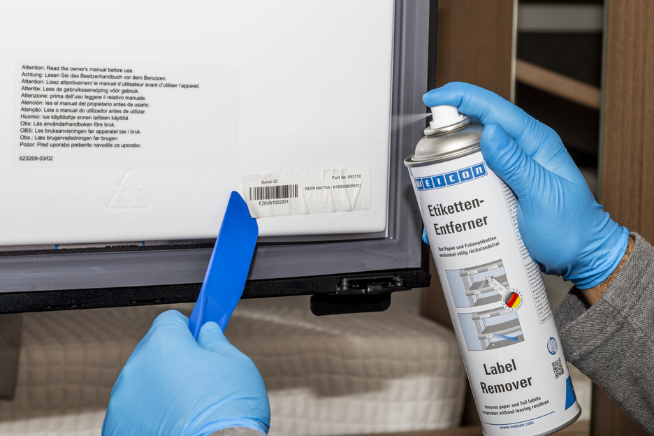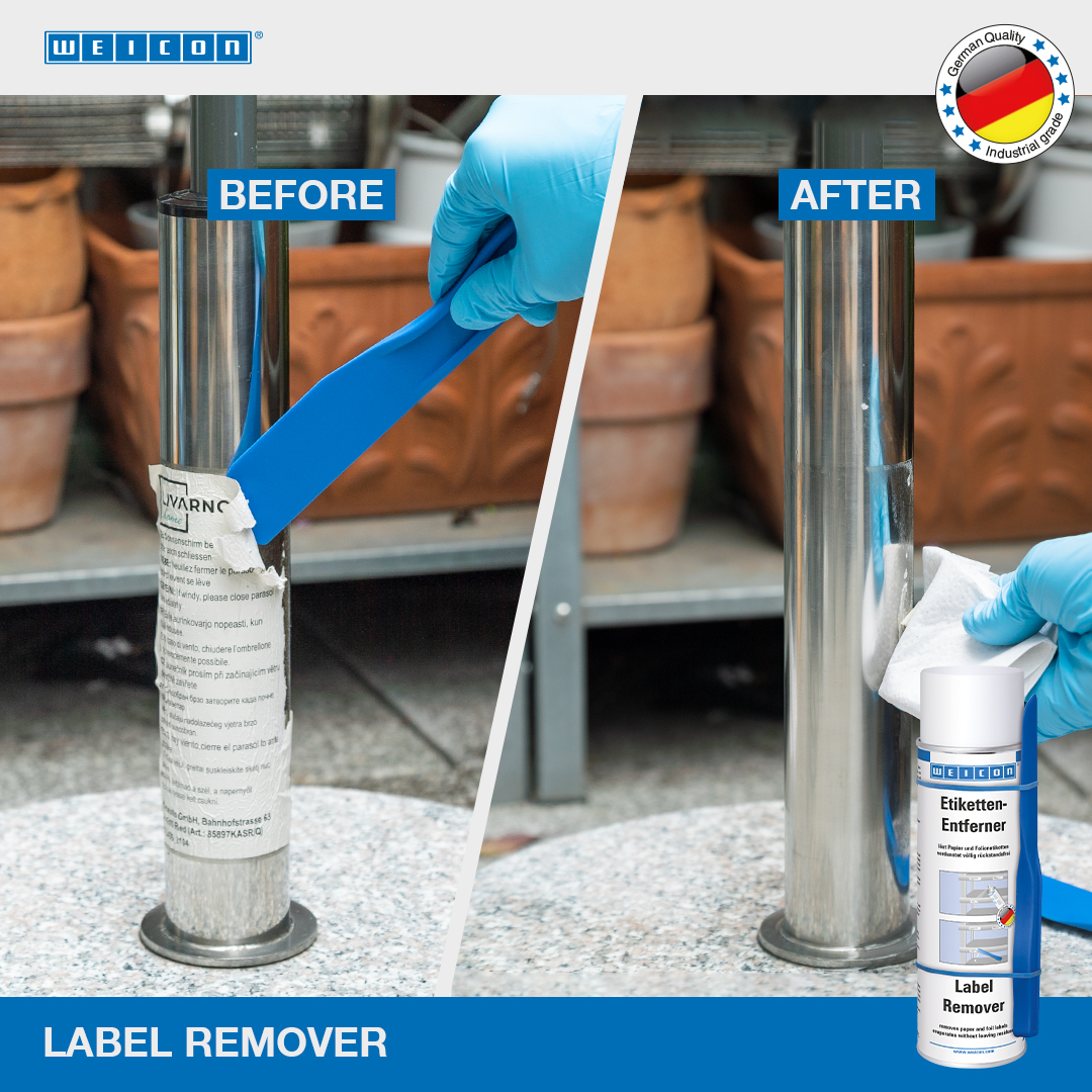 WEICON Odstraňovač etiket odstraňuje snadno a rychle papírové etikety a zbytky lepidel na bázi akrylátu a kaučuku. WEICON Odstraňovač etiket je vhodný pro většinu povrchů jako je sklo, kovy, dřevo, fólie a plasty. WEICON Odstraňovač etiket snadno a rychle odstraňuje cenovky (např. chybné výtisky), nálepky s adresou nebo popisem produktu, popisové etikety, zbytky etiket a lepidla např. po dálničních známkách.