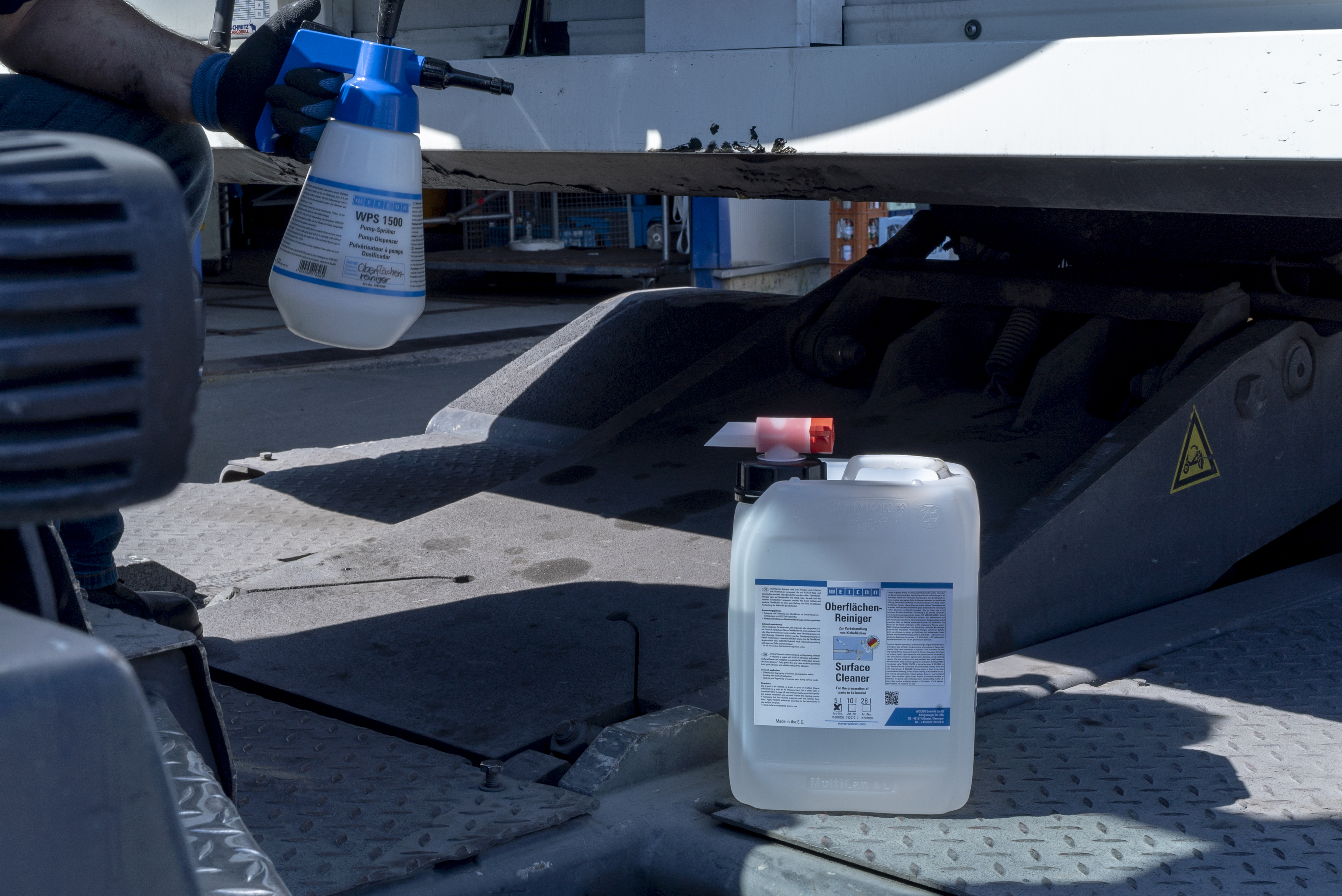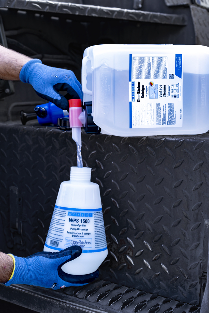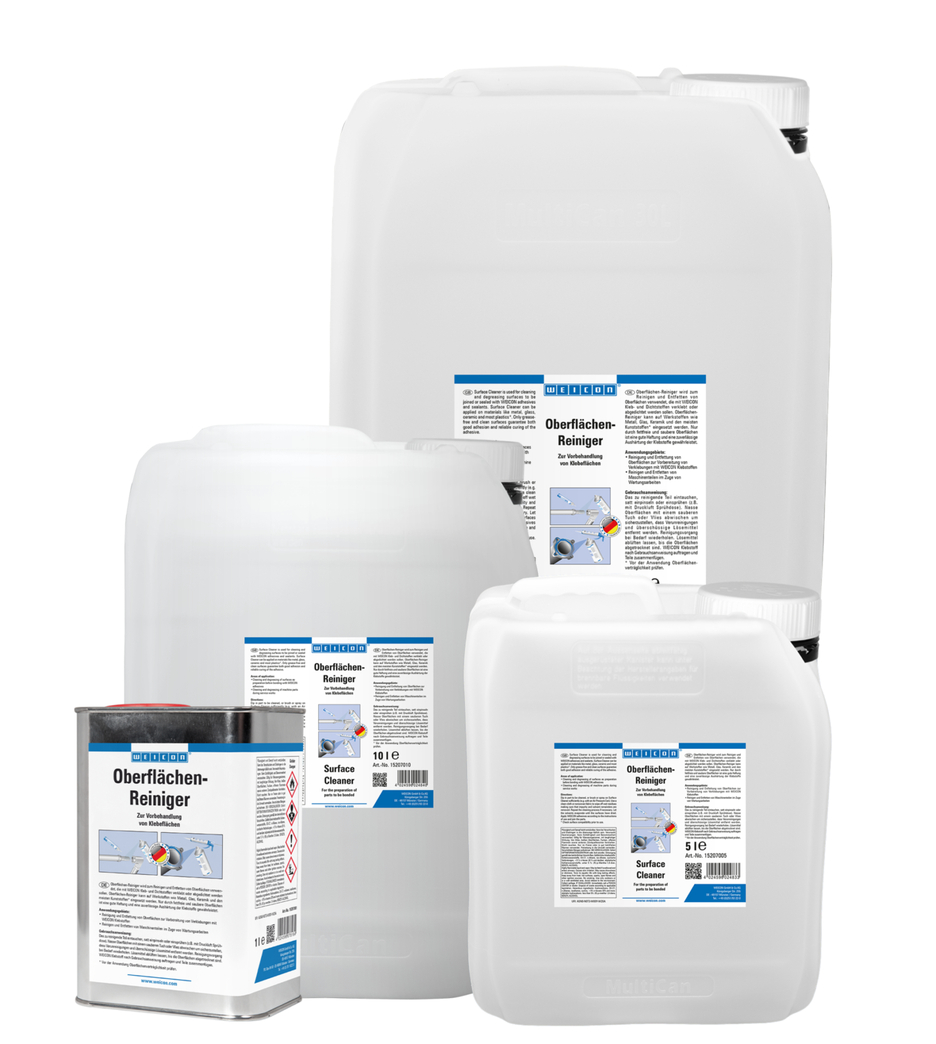 WEICON Povrchový čistič se používá k čištění a odmašťování povrchů určených ke slepení nebo utěsnění pomocí lepidel nebo těsnicích hmot WEICON. Povrchový čistič lze použít na materiály jako je kov, sklo, keramika a většina plastů. Například jej lze použít k čištění a odmaštění stroje při údržbě.