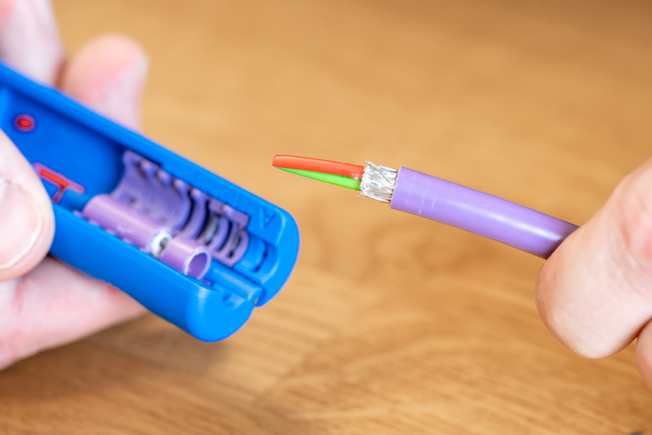 Pomocí Profibus Odizolovače No. 2 lze čistě odříznout vnější plášť a spodní stínění, aby bylo možné odizolovat Profibus kabel podle jeho konektoru. Měřítko optické délky v modulu lze použít k výběru vhodné délky odizolování pro přípravu ethernetových kabelů pro připojení konektoru FastConnect. U odizolovacích délek 17 mm, 20 mm, 24 mm a 30 mm jsou obvyklé rozměry vizuálně vyznačeny v modulu. Odizolovač byl vyvinut pro řezání kabelů Profibus v rozsahu 5,5 mm až 8 mm pomocí dvou párů nožů současně pro přesné uchycení. Řezný vzor vytváří ideální přípravu pro konektory FastConnect – a to i s různými průměry kabelů. V případě potřeby lze vkládací bod a nůž v poloskořepinách vyměnit nebo obnovit jako moduly.