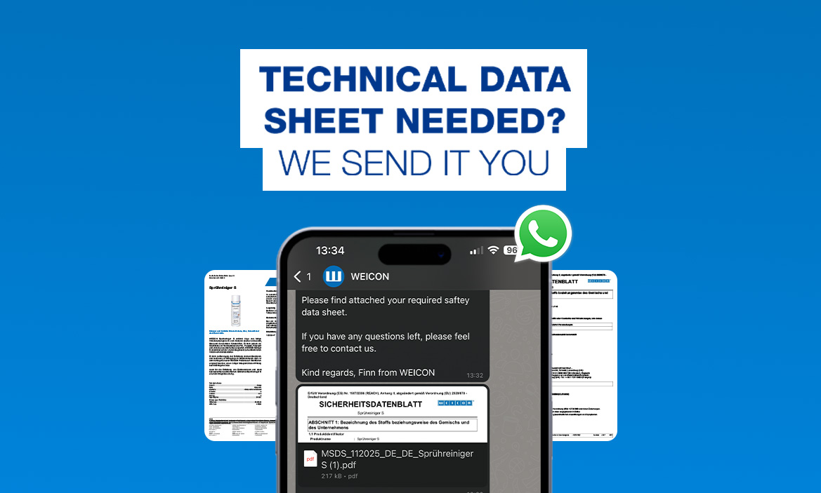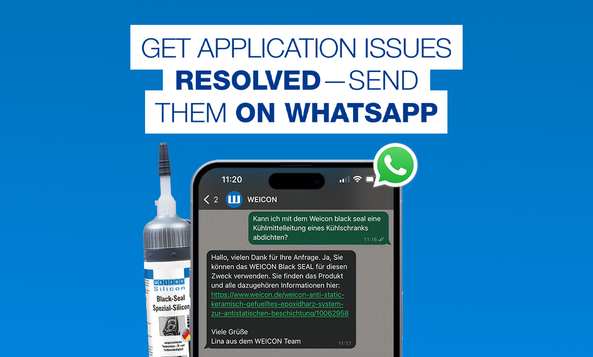 Chcete nás kdykoli a kdekoli kontaktovat, poslat nám fotografie své aplikace nebo použít vyhledávač WEICON TOOLS? Máte dotazy k našim produktům, hledáte správnou kontaktní osobu nebo chcete rychle a snadno objednat přes WhatsApp? To vše jsme vám umožnili! Využijte náš WhatsApp nebo se přihlaste k odběru newsletteru WhatsApp či našeho nového kanálu WhatsApp.