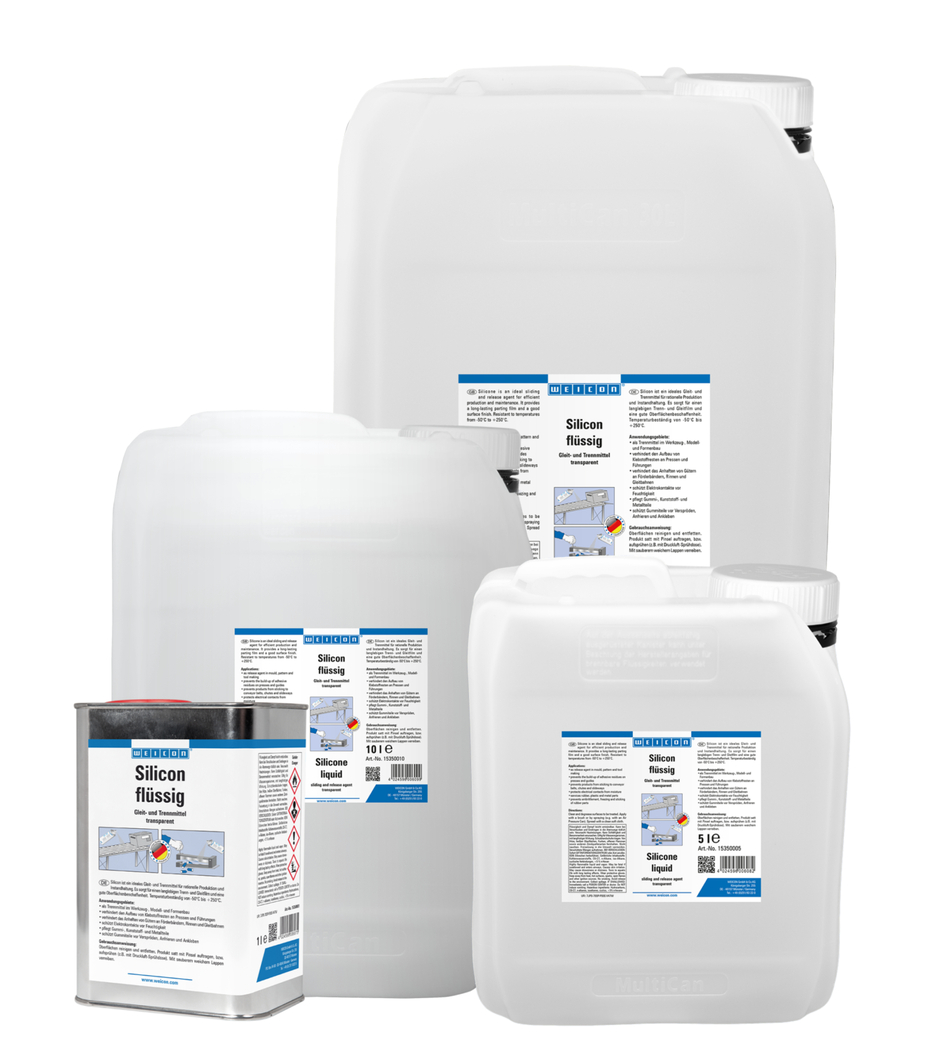 WEICON Silikon je mazivo, separátor a prostředek pro ochranu a ošetřování plastů pryže a kovů. Teplotní odolnost až do +250°C (+482°F). WEICON Silikon lze použít v mnoha oblastech průmyslu. WEICON Silikon chrání elektrické kontakty před vlhkostí, ošetřuje pryžové, kovové a plastové prvky, chrání pryžové prvky před stárnutím, namrzáním a slepováním, umožňuje hladké vedení střešních oken, vodicích a bezpečnostních pásů. WEICON Silikon vytváří dlouhodobý oddělovací povlak a zajišťuje kvalitu povrchu. Zabraňuje ukládání zbytků lepidel na lisech a vedeních, zabraňuje ulpívání surovin na dopravnících, žlabech a skluzech.