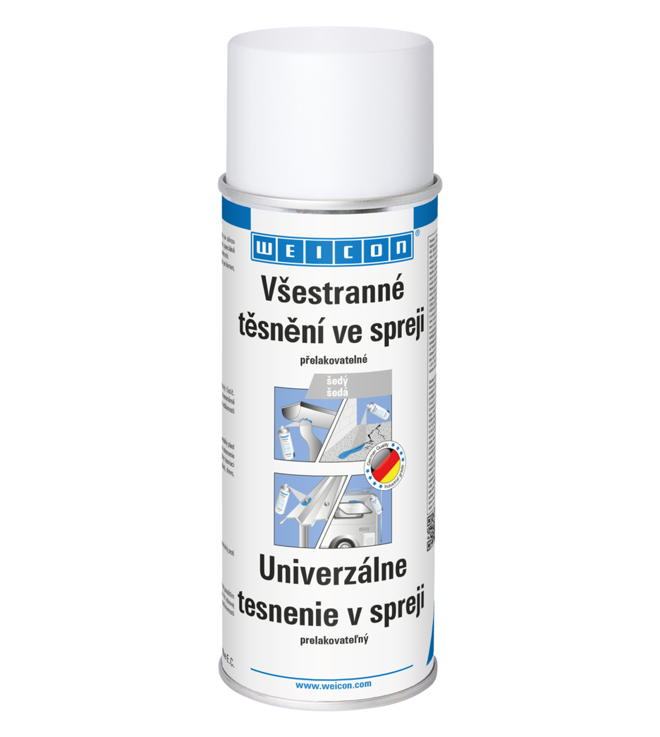 Všestranné těsnění ve spreji je plastická hmota se silnou přilnavostí pro utěsnění netěsností. Bylo vyvinuto speciálně pro utěsnění těch nejjemnějších trhlin v interiérech a exteriérech. K utěsnění žlabů, kanalizačních a drenážních potrubí, karavanů, mobilhausů a lodí, střech a oken, stěn bazénů a fólií rybníků, ventilačních šachet. Nástřik je přelakovatelný, voděodolný, vůči počasí a UV záření odolný. Chrání kovy vůči korozi a je bez obsahu živic a silikonu. Všestranné těsnění ve spreji přilne k mnoha povrchům, jako je kámen, kov, plast, dřevo, smalt a mnoho dalších.