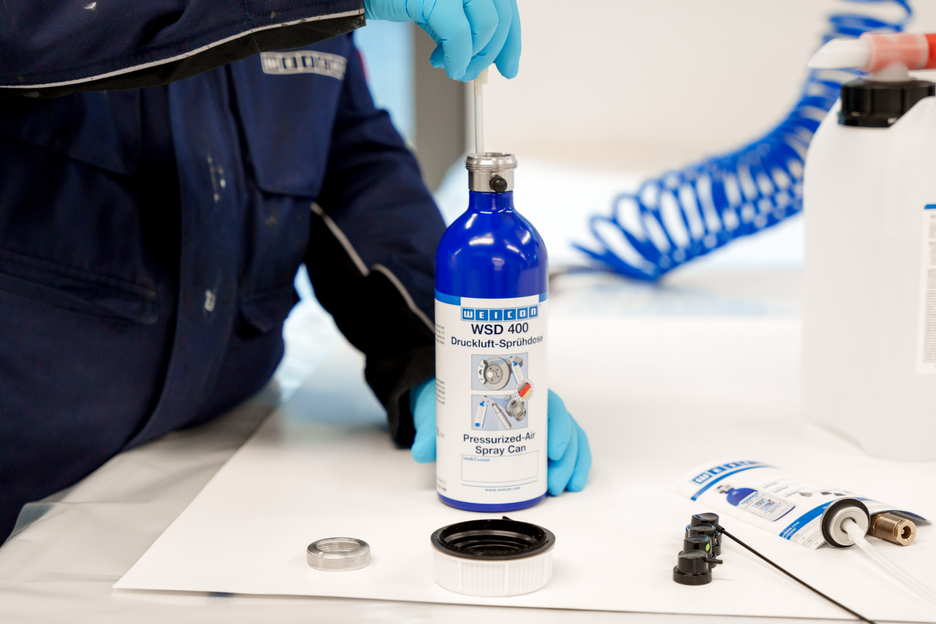 WSD 400 je opakovaně plnitelná postřikovací nádobka pro aplikaci většiny kapalných látek WEICON.