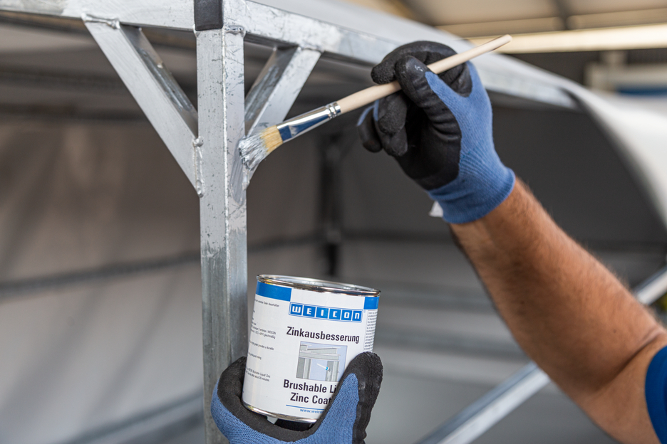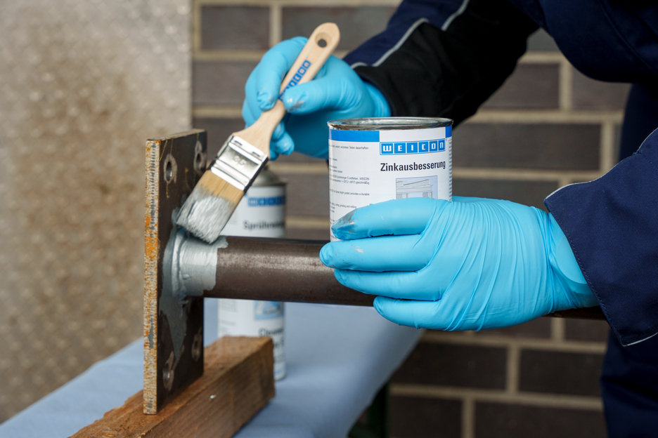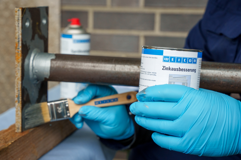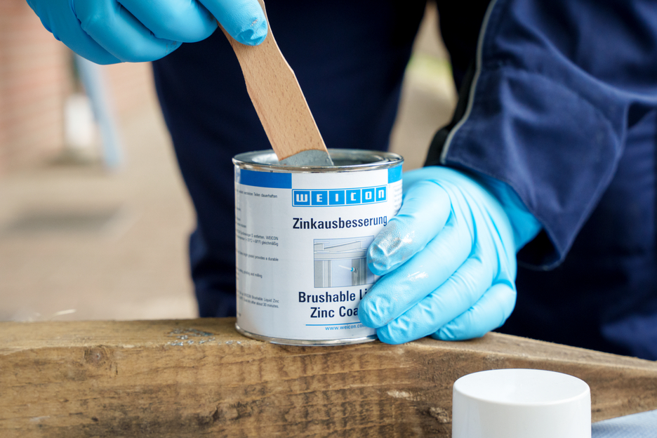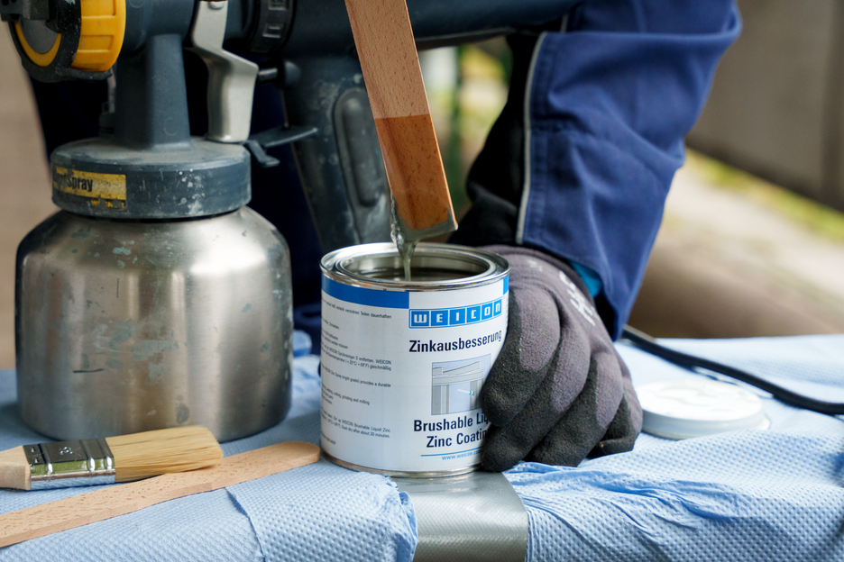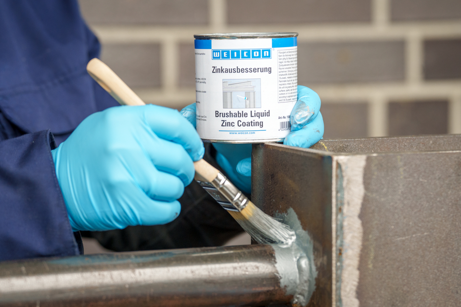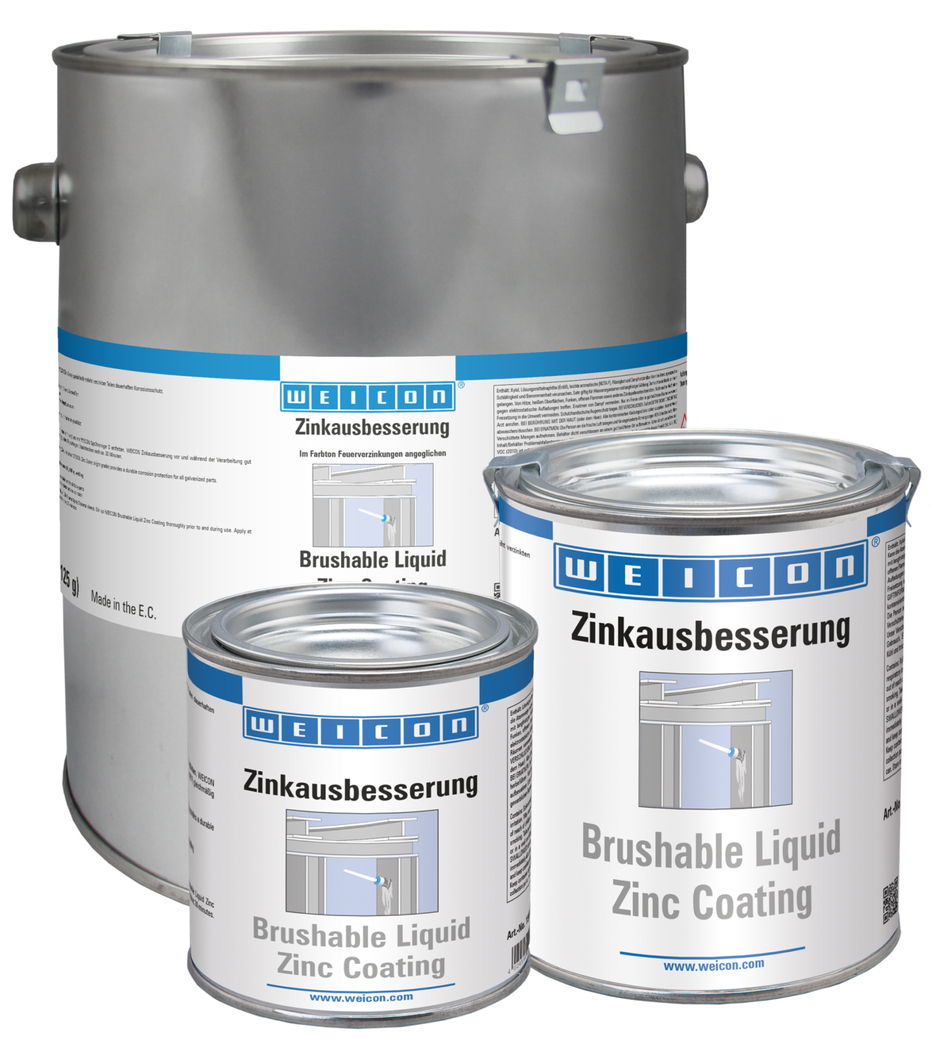 WEICON Zinková barva na opravy je aktivní korozní ochrana pro všechny kovové plochy, s odstínem podobným jako žárové pozinkování. Při aplikaci WEICON Zinková barva na opravy se destičkové šupinové pigmenty (vločky) ukládají na podklad ve více vrstvách (prostorově přesazených) jako tašky na střeše. Tím je povrch déle chráněný před vlhkostí. Optimální protikorozní ochrany se dociluje ve spojení se současným elektrochemickým účinkem.