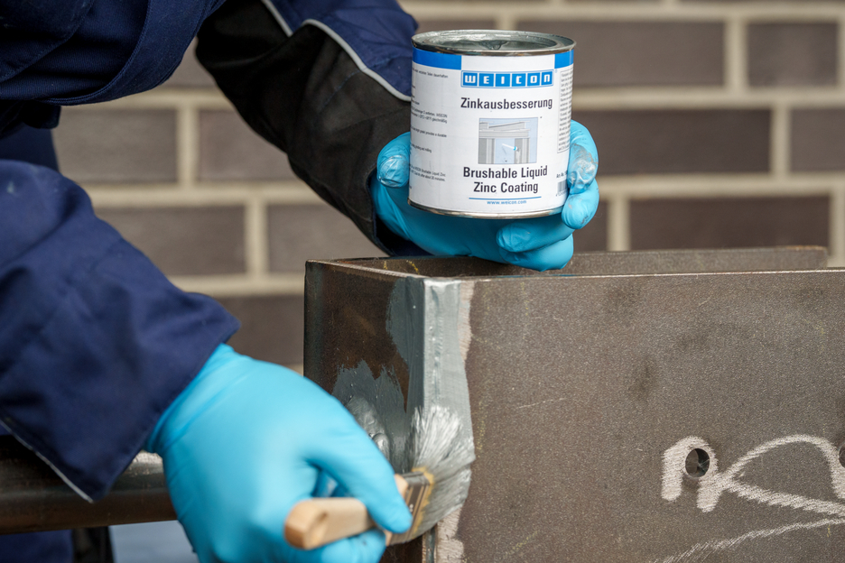 WEICON Zinková barva na opravy je aktivní korozní ochrana pro všechny kovové plochy, s odstínem podobným jako žárové pozinkování. Při aplikaci WEICON Zinková barva na opravy se destičkové šupinové pigmenty (vločky) ukládají na podklad ve více vrstvách (prostorově přesazených) jako tašky na střeše. Tím je povrch déle chráněný před vlhkostí. Optimální protikorozní ochrany se dociluje ve spojení se současným elektrochemickým účinkem.